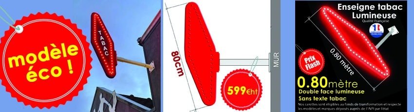 Modèle d'enseigne lumineuse et non lumineuse française et carotte de tabac de chez Enseigne Boutique à sainte-savine en france