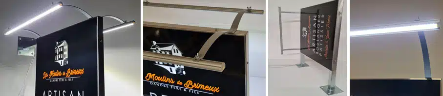 Enseigne drapeau aluminium plate avec éclairage (uniquement pour le format 50x50cm et 60x60cm) (photo prise dans le noir complet)
