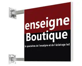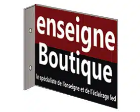 Enseigne drapeau aluminium double face équipée de 2 potences de fixation de 10 cm – Épaisseur de 3 cm. ( autre dimension nous consulter)
