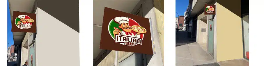 Les enseignes drapeaux perpendiculaires au mur pour être vu par les passants et les voitures